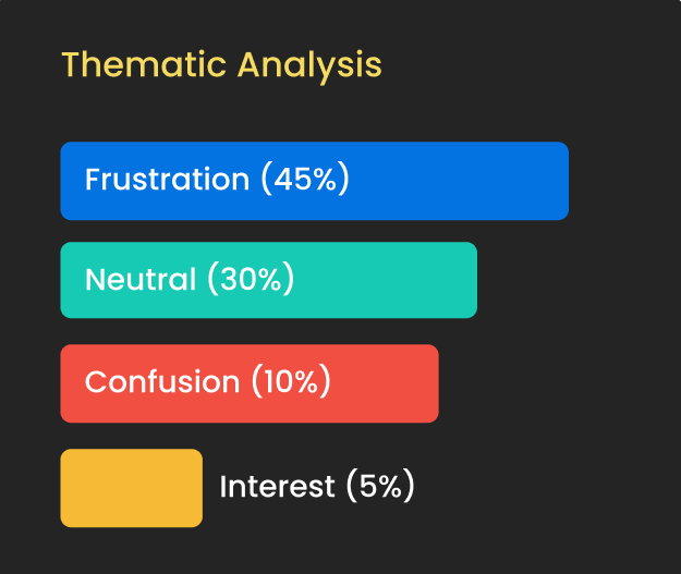 Get summarized, actionable reports with key takeaways and with the ability to deep dive into individual conversations
